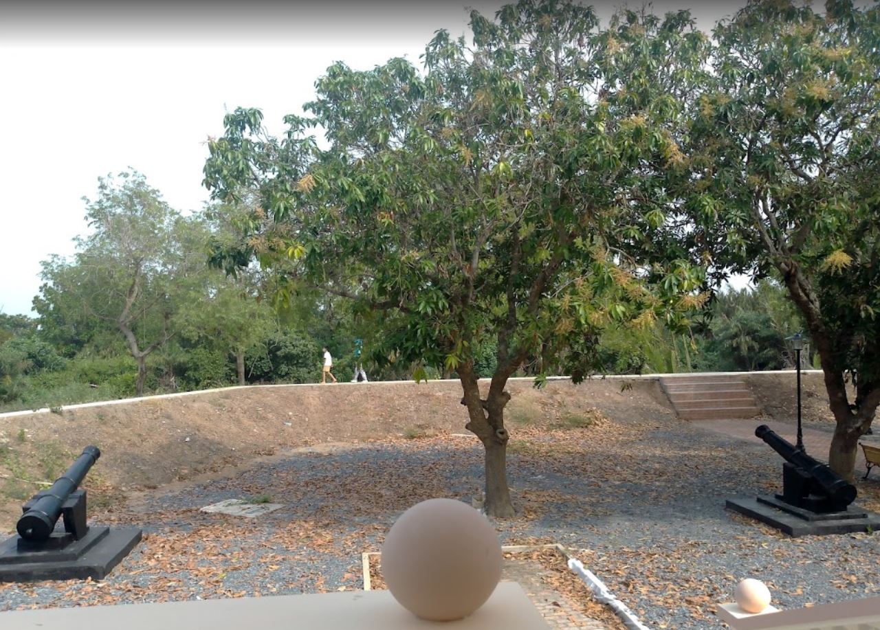 Luỹ Pháo Đài xung quanh là thành đất đắp cao, dày có 06 cạnh cân đối khá đều nhau, thành hình lục lăng (lục giác), diện tích khoảng 3.000m