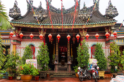 The ancient house of Huynh Thuy Le is located at 225A Nguyen Hue Street, Ward 2, Sa Dec city, built by Mr. Huynh Cam Thuan (Mr. Huynh Thuy Le's father) in 1895 and restored in 1917. This house has an architectural style. decorated architecture, unique, showing Eastern and Western architecture combined. Specifically, the traditional architecture is tall, cool inside, walls are built of very thick bricks from 30-40cm surrounding the wooden frame structure, increasing the bearing capacity. However, the shape is in the traditional Vietnamese style, the yin-yang tile roof, the two gables are curved in the shape of a boat in the style of the Northern temple temple in order to create a soft feature for the roof. The house has three compartments, this is the traditional type of Vietnamese people, the wooden doors are elaborately carved, decorated inside the Chinese style. The balcony, painted the gilded lacquer gilded, carved like a Chinese pagoda, the central balcony with double touch Loan Phung shows "Loan Phung Hoa minh sharp grip compromise" means happiness forever. The frames on both sides of the tree show the abundance of the family. Especially, in the middle of the main house, there is Quan Cong worship, this is the traditional Chinese threshold; At the same time, it also shows strength and prosperity in life.