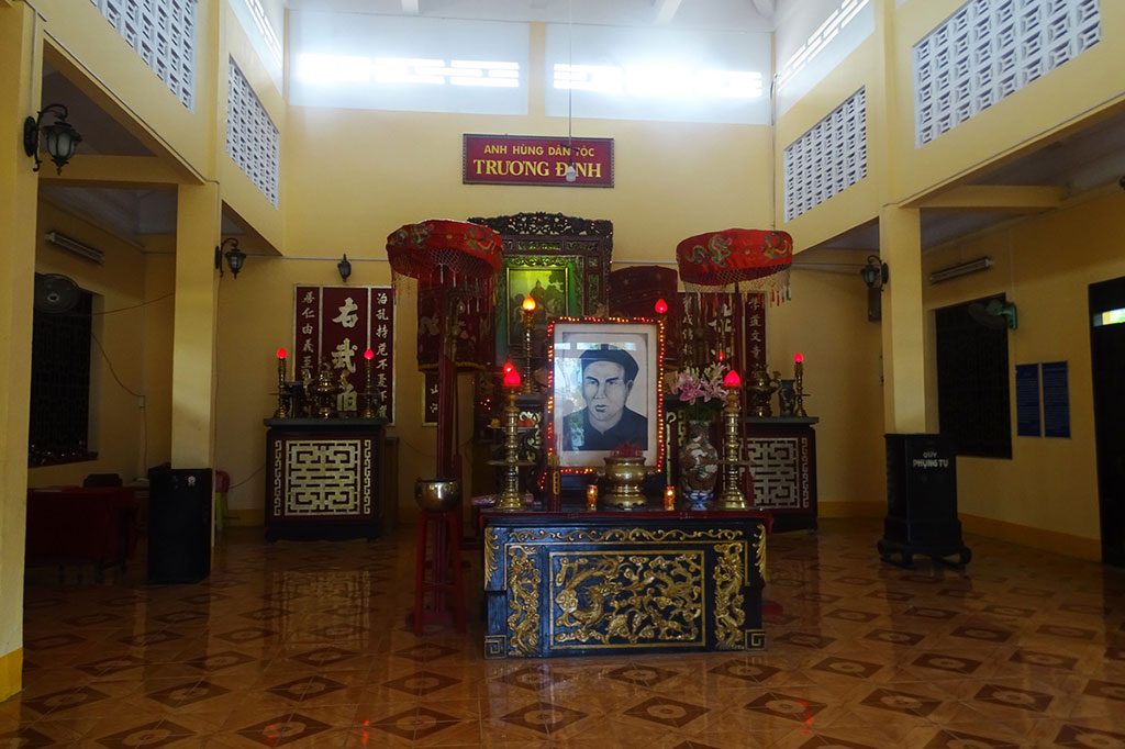 Lăng mộ và đền thờ Trương Định tọa lạc trên đường Phan Đình Phùng, Phường Gò Công, Tỉnh Đồng Tháp. Trương Định sinh năm 1820, tại huyện Bình Sơn, Quảng Ngãi. Cha ông là Trương Cầm, giữ chức lãnh binh tỉnh Gia Định. Vào thời vua Thiệu Trị ông theo cha vào Nam, lấy vợ và sinh sống tại huyện Tân Hòa (nay là huyện Gò Công Đông). Trương Định là người đứng đầu trong việc khai hoang lập ấp và được triều đình phong cho chức Quản cơ. Khi quân Pháp xâm lược, ông đã cùng nhân dân đứng lên khởi nghĩa và bao phen làm giặc khiếp sợ. Ngày 20/8/1864 ông bị thương, để không sa vào tay giặc, ông đã dùng gươm tuẫn tiết.